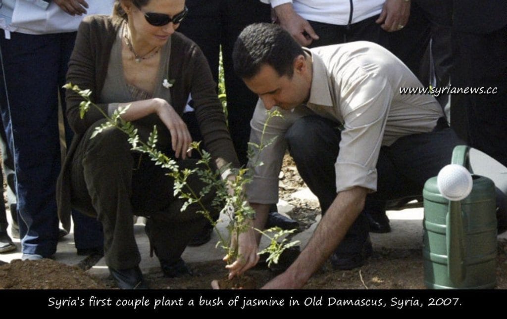 Asmaa & Bashar Al Assad Plantan un Jazmín en Damasco, en el Antiguo Damasco, 2007[/caption]Damasco es conocida por ser la ciudad del Jazmín, ya que se huele a jazmín en la mayoría de sus calles y se ven los árboles de jazmín salir de los jardines de sus casas antiguas, e incluso plantas bajas de los edificios nuevos.